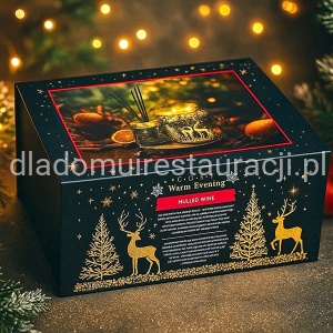Zestaw Warm Evening – Grzane Wino to doskonały wybór na prezent świąteczny lub upominek na zimowe dni. Jego elegancki design i trwały zapach sprawiają, że idealnie sprawdzi się w salonie, sypialni lub biurze, wprowadzając atmosferę relaksu i przytulności.